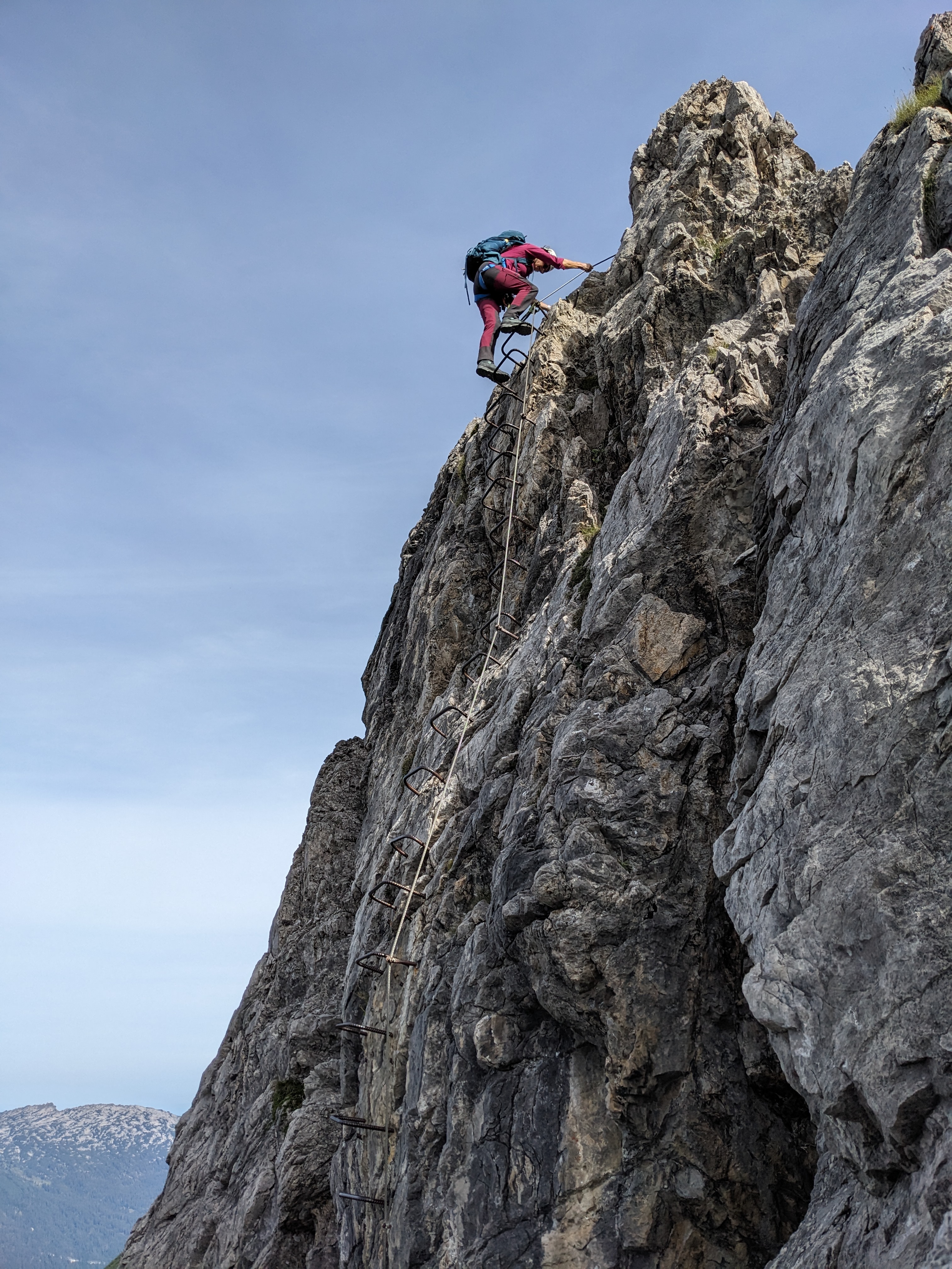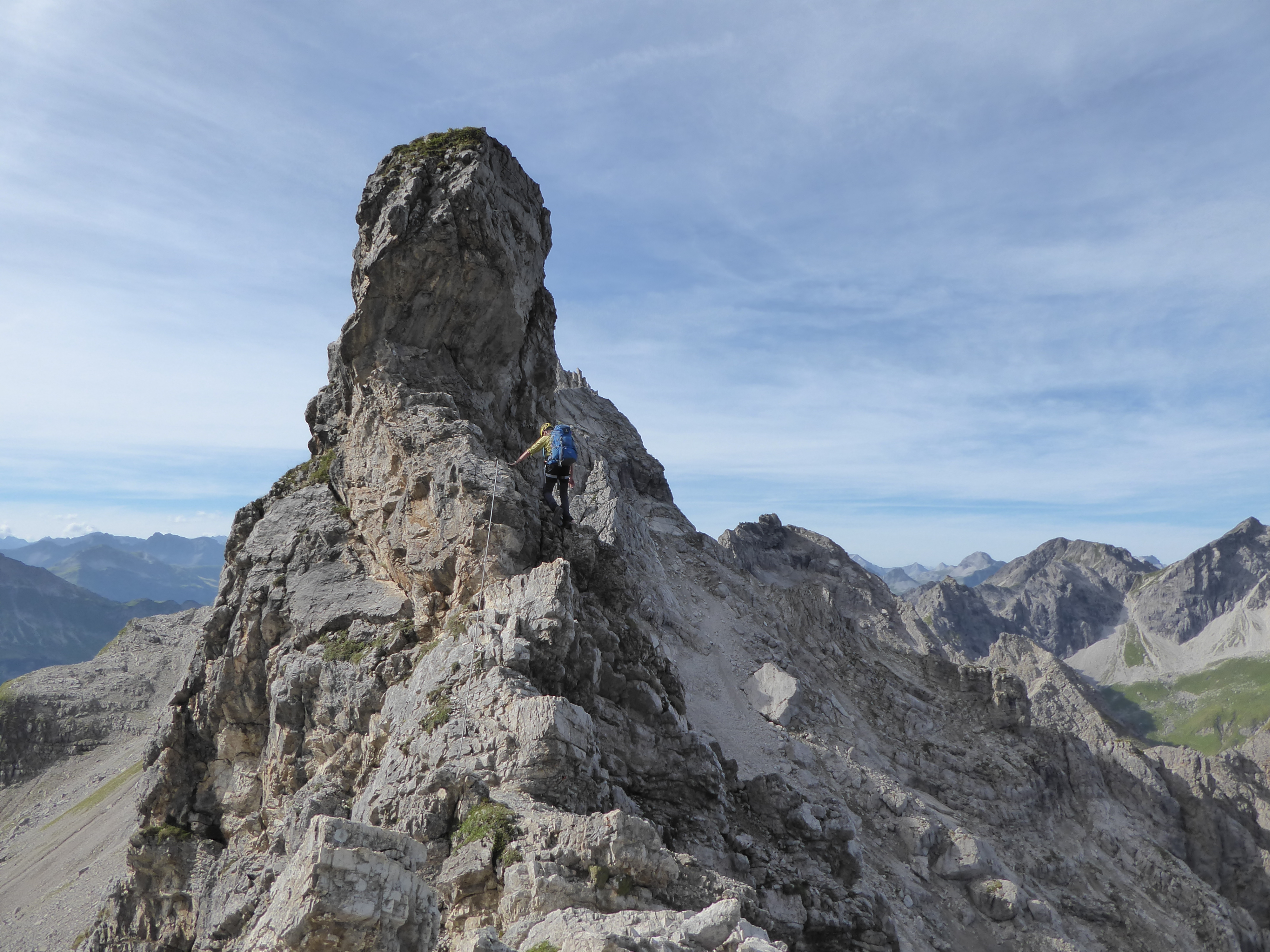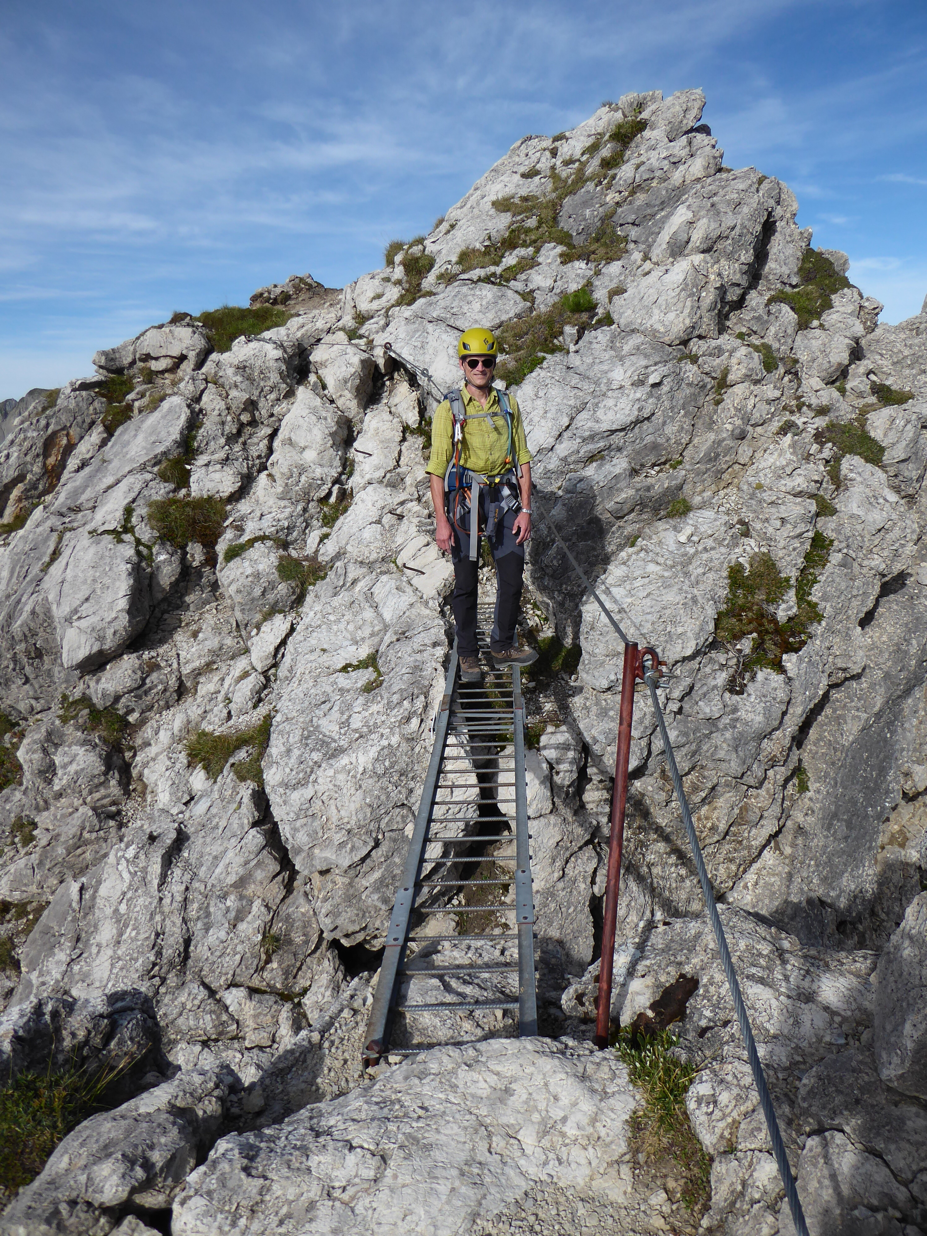 Der Mindelheimer Klettersteig ist, denke ich, hinreichend auf verschiedenen Webseiten beschrieben, so dass ich hier gerne auf die Details verzichte. Die Bewertung als C Klettersteig ist unserer Meinung nach zutreffend. Die meisten Passagen lassen sich sehr gut klettern und das Klettersteigset ist für uns nicht durchgängig erforderlich.