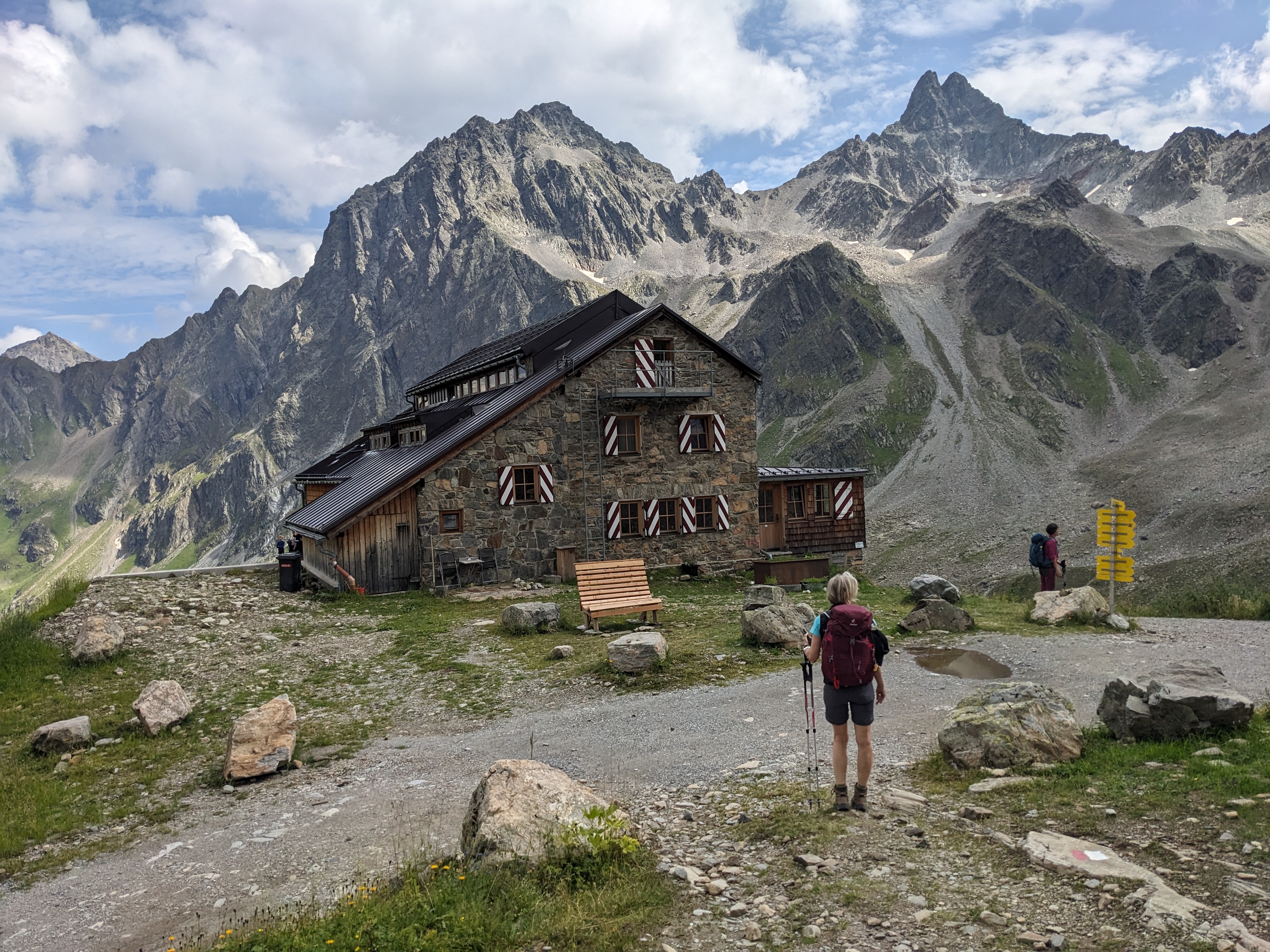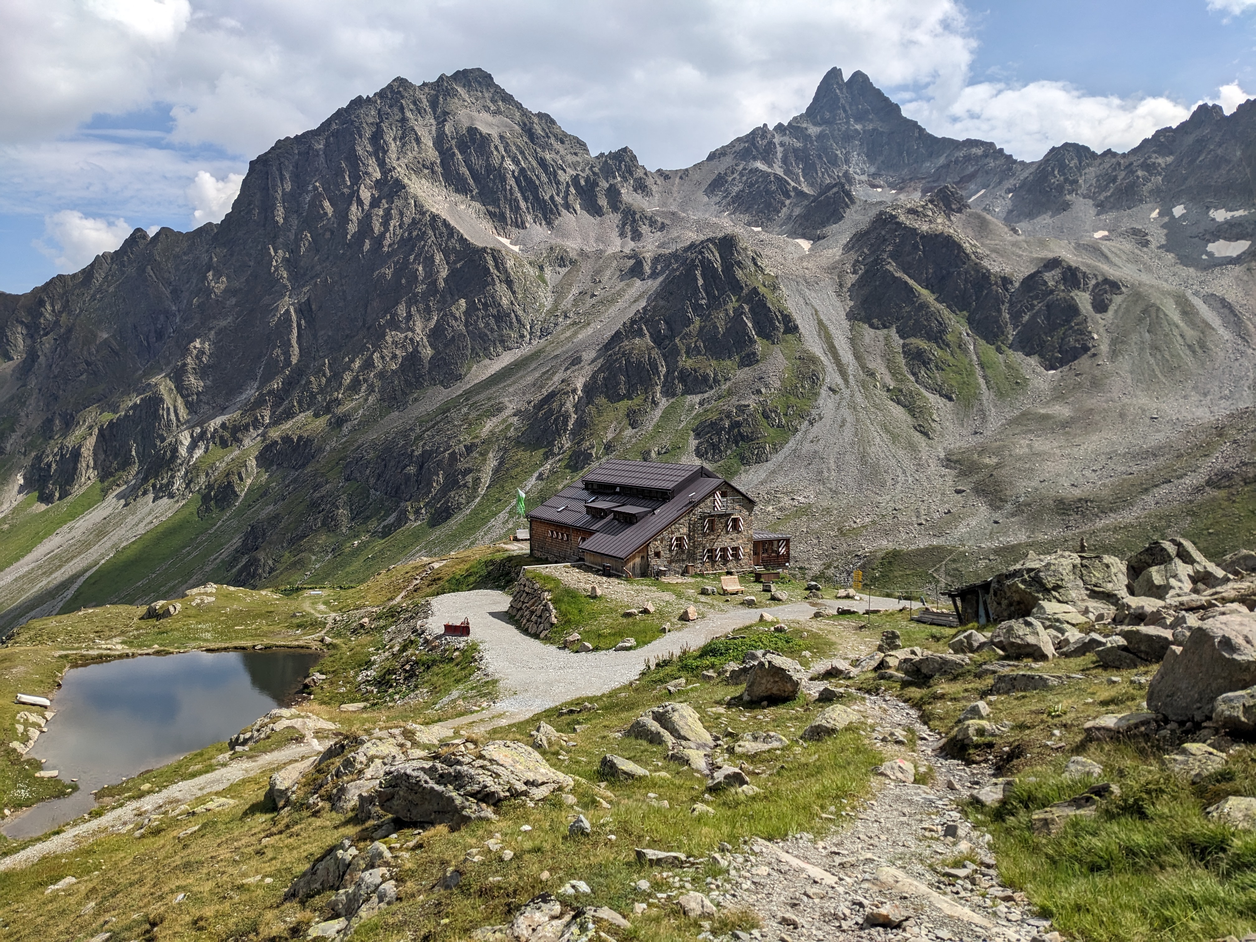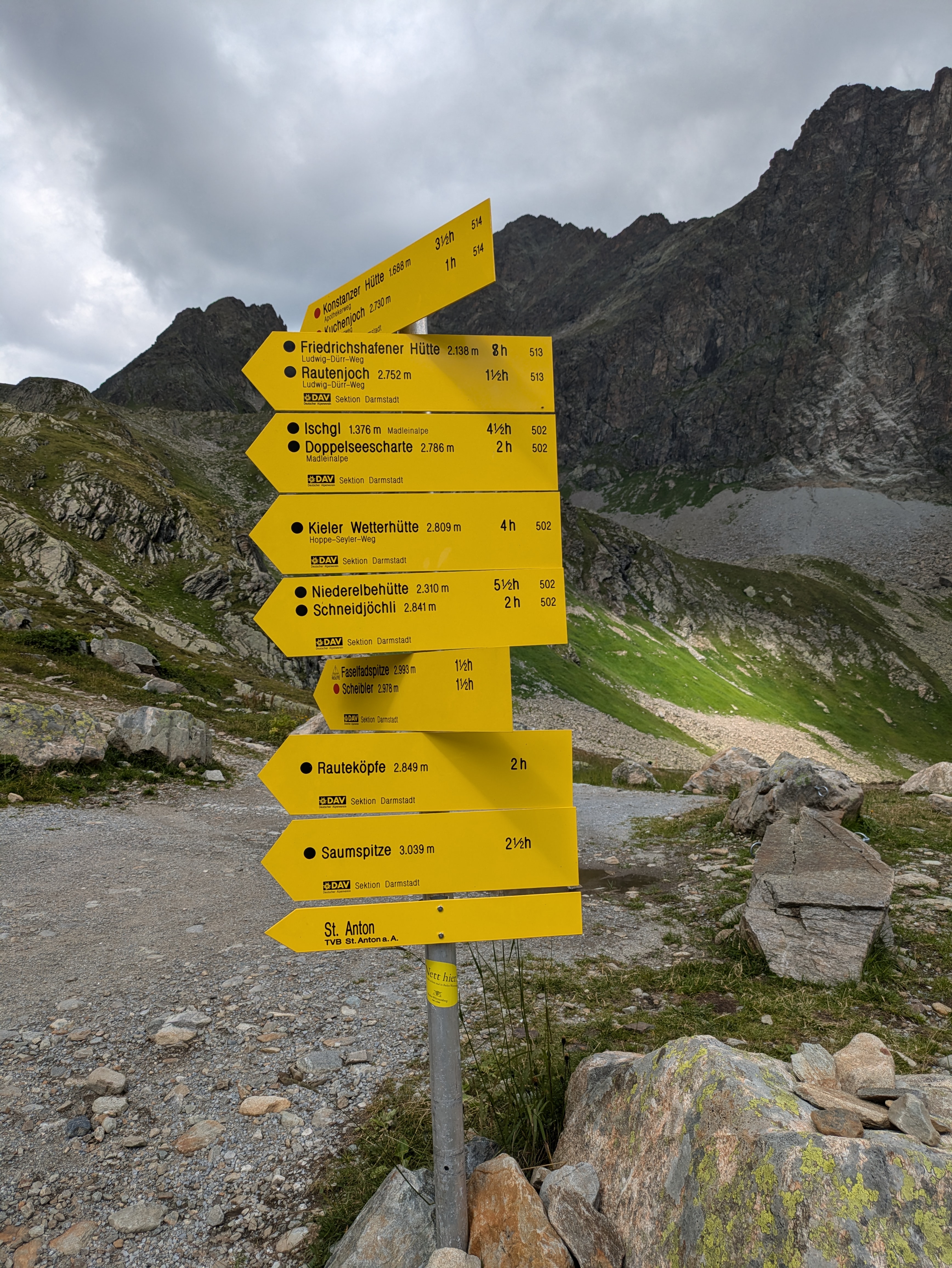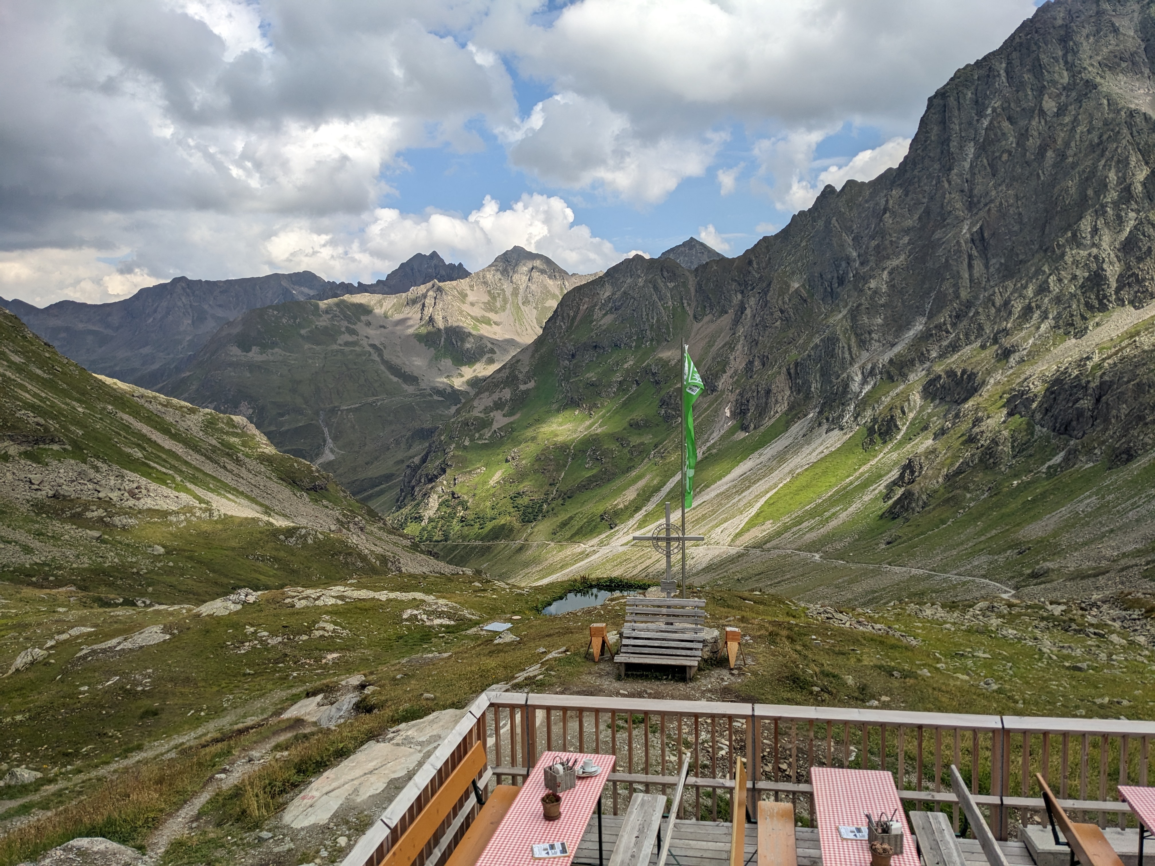Während es auf den vorherigen Hütten Telefonempfang und ein stabiles Internet gab, ist dies hier auf der Darmstädter Hütte nicht der Fall. Mit etwas Glück und Ausdauer lässt sich der Wetterbericht für den nächsten Tag vor der Hütte, am Fahnenmast herunterladen.