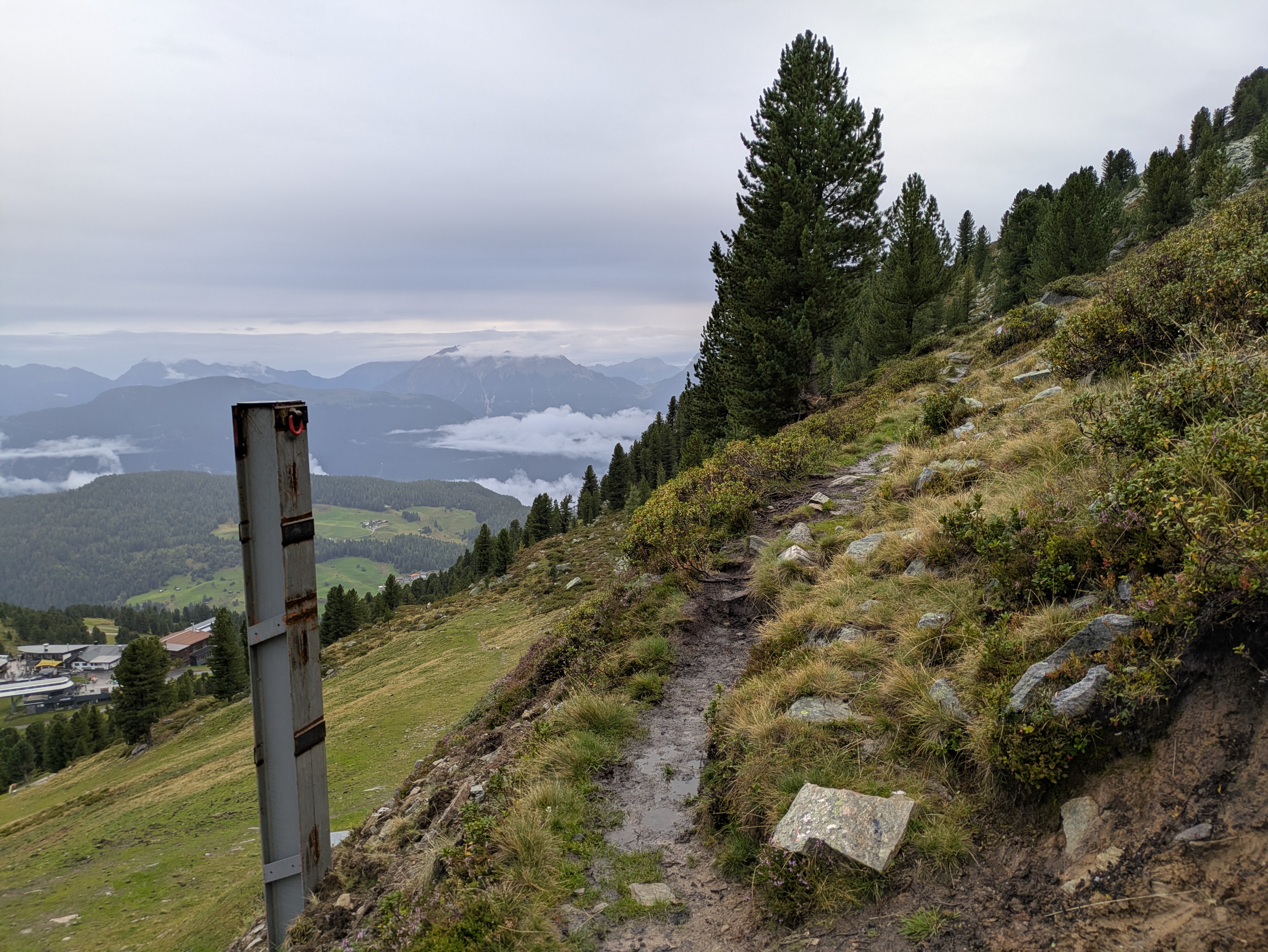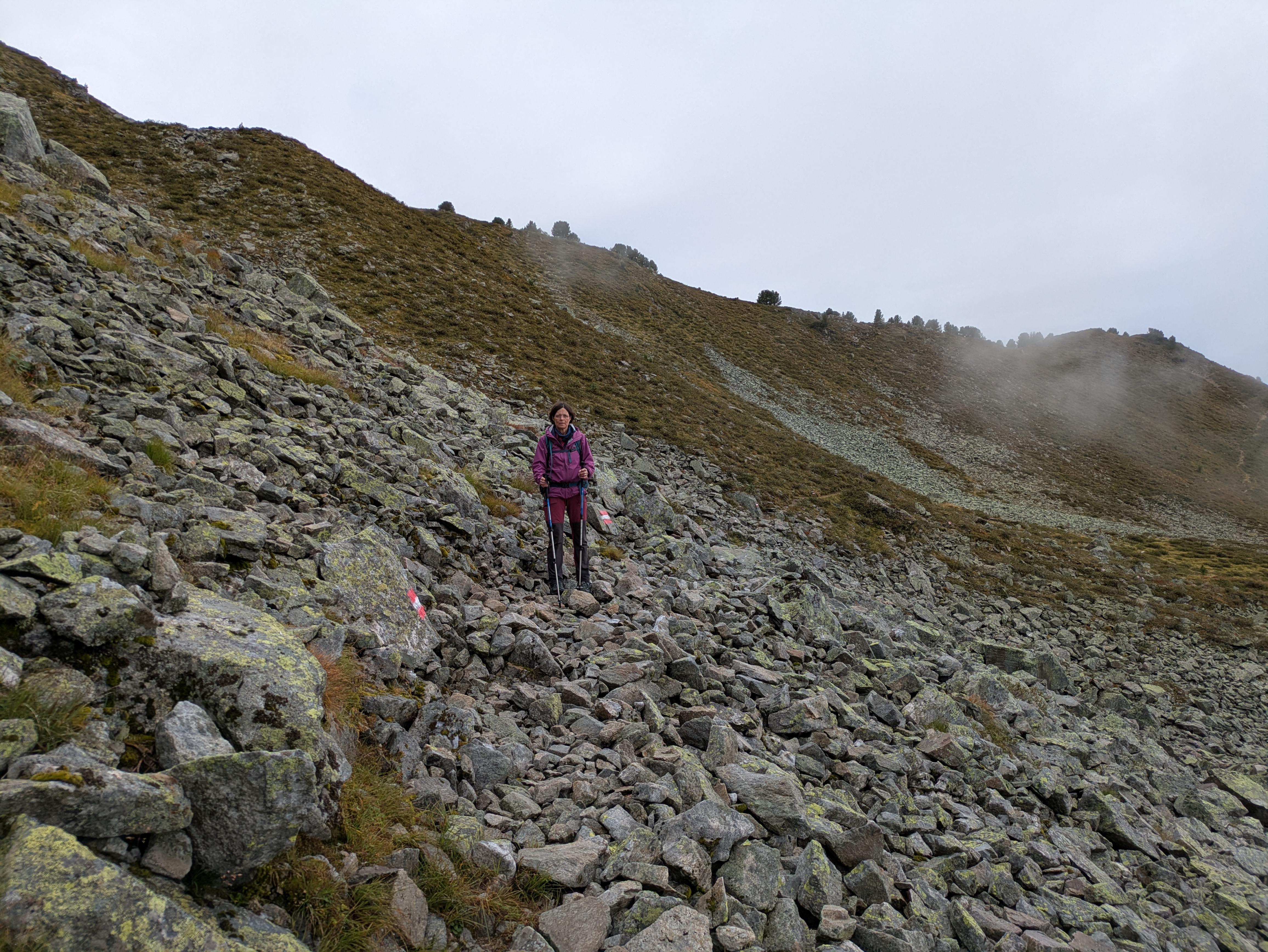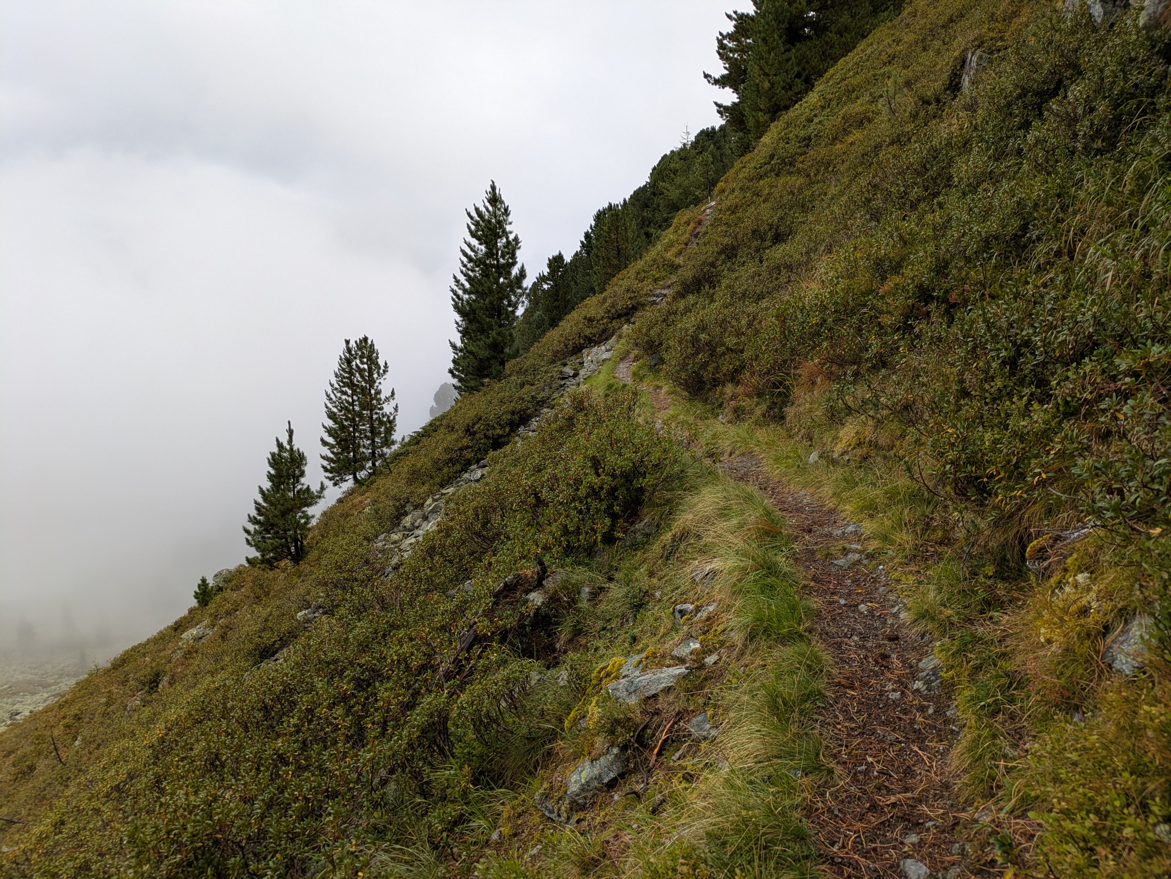 Statt eines Apfelstrudels gibt es dafür 60 Abstiegsmeter, um wieder die 1900’er Linie zu erreichen.