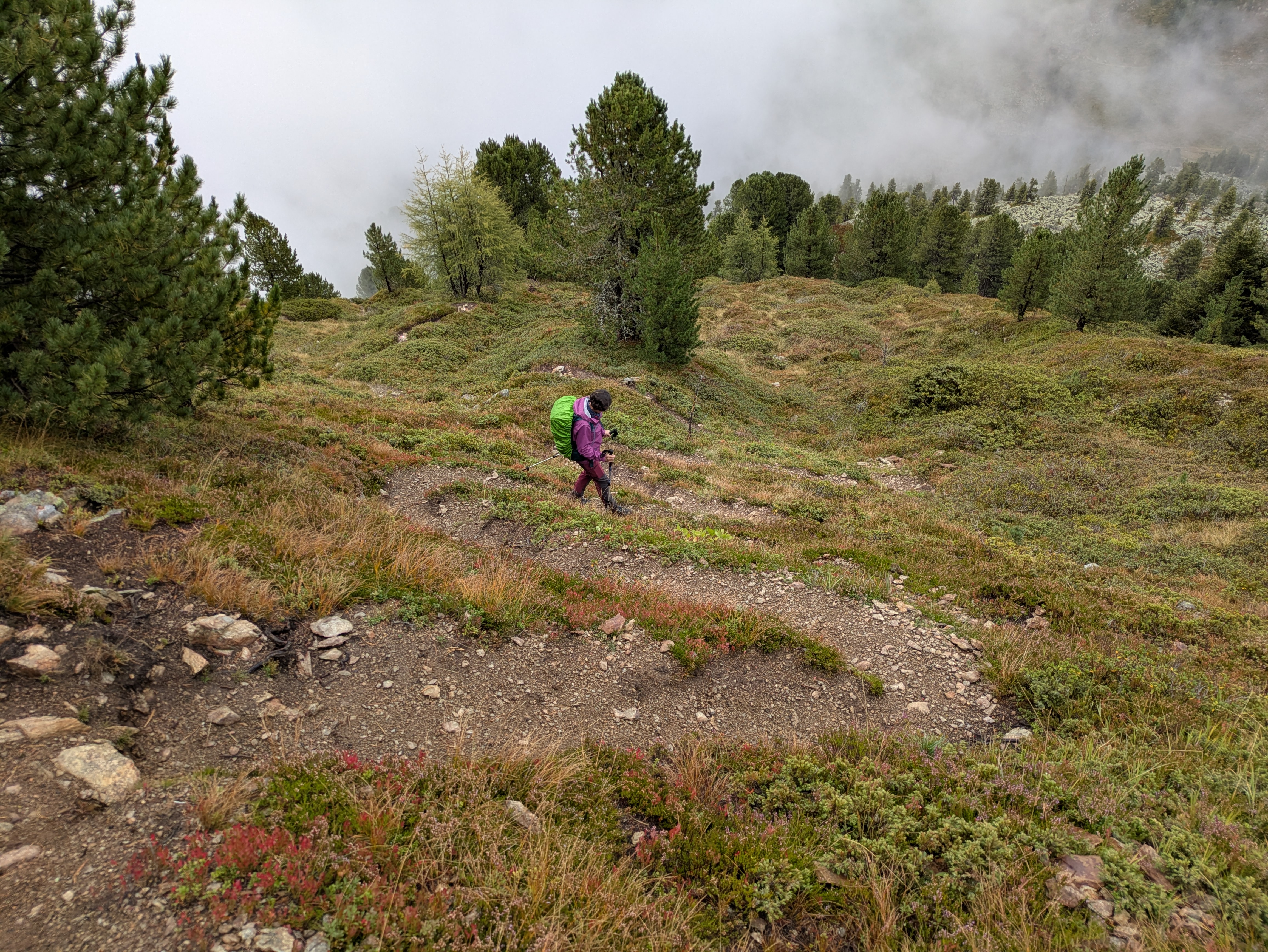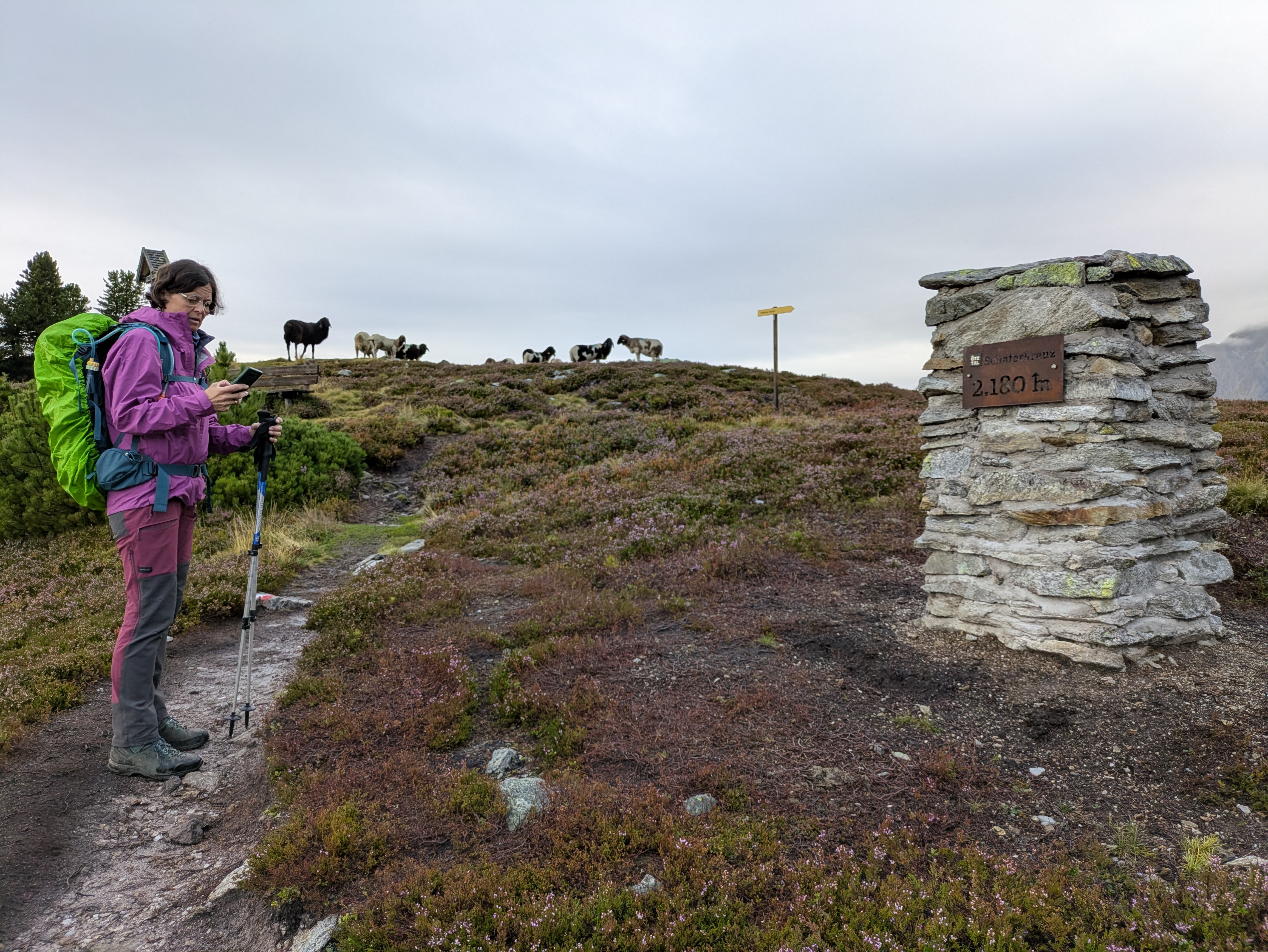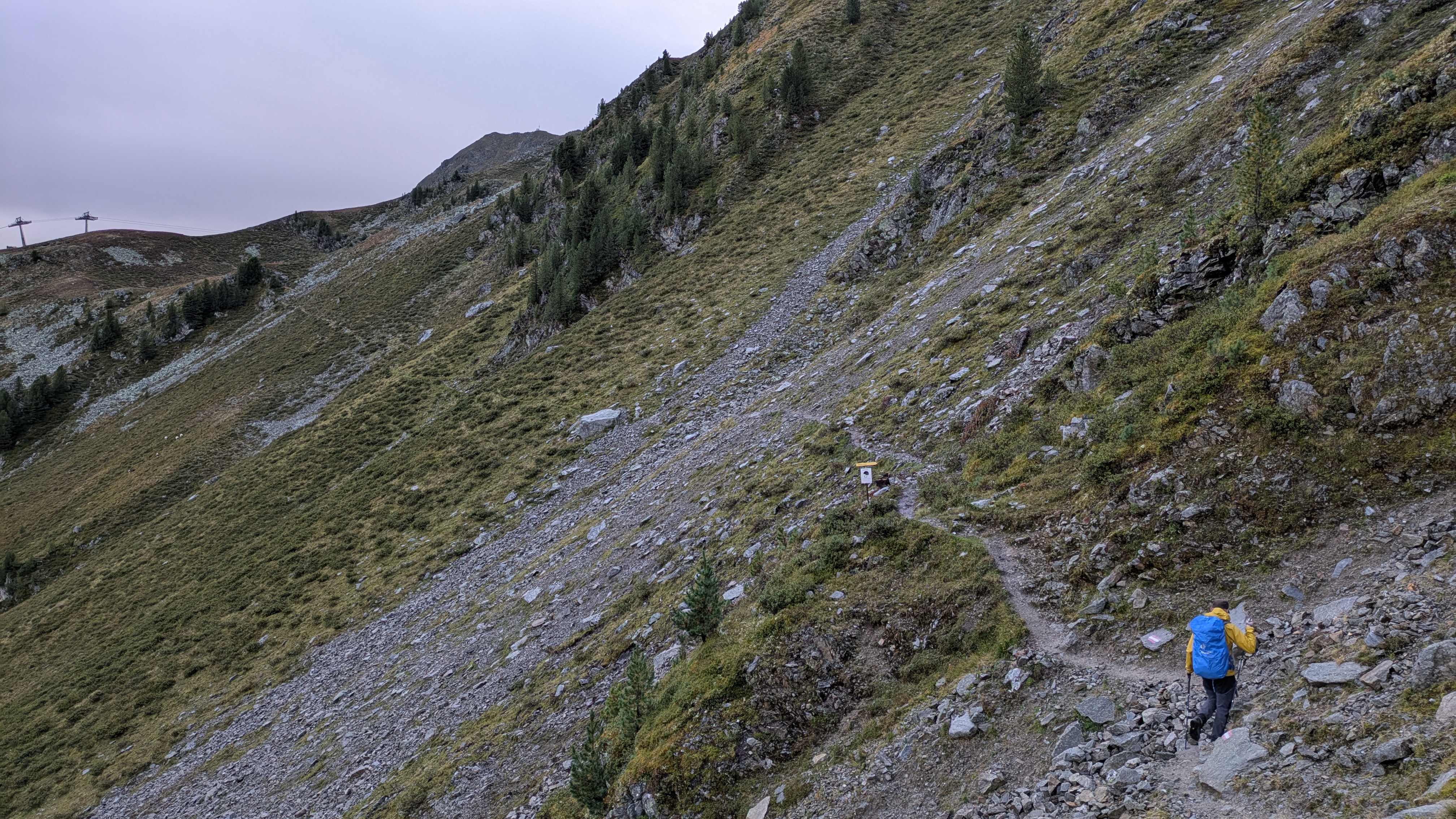 Statt eines Apfelstrudels gibt es dafür 60 Abstiegsmeter, um wieder die 1900’er Linie zu erreichen.