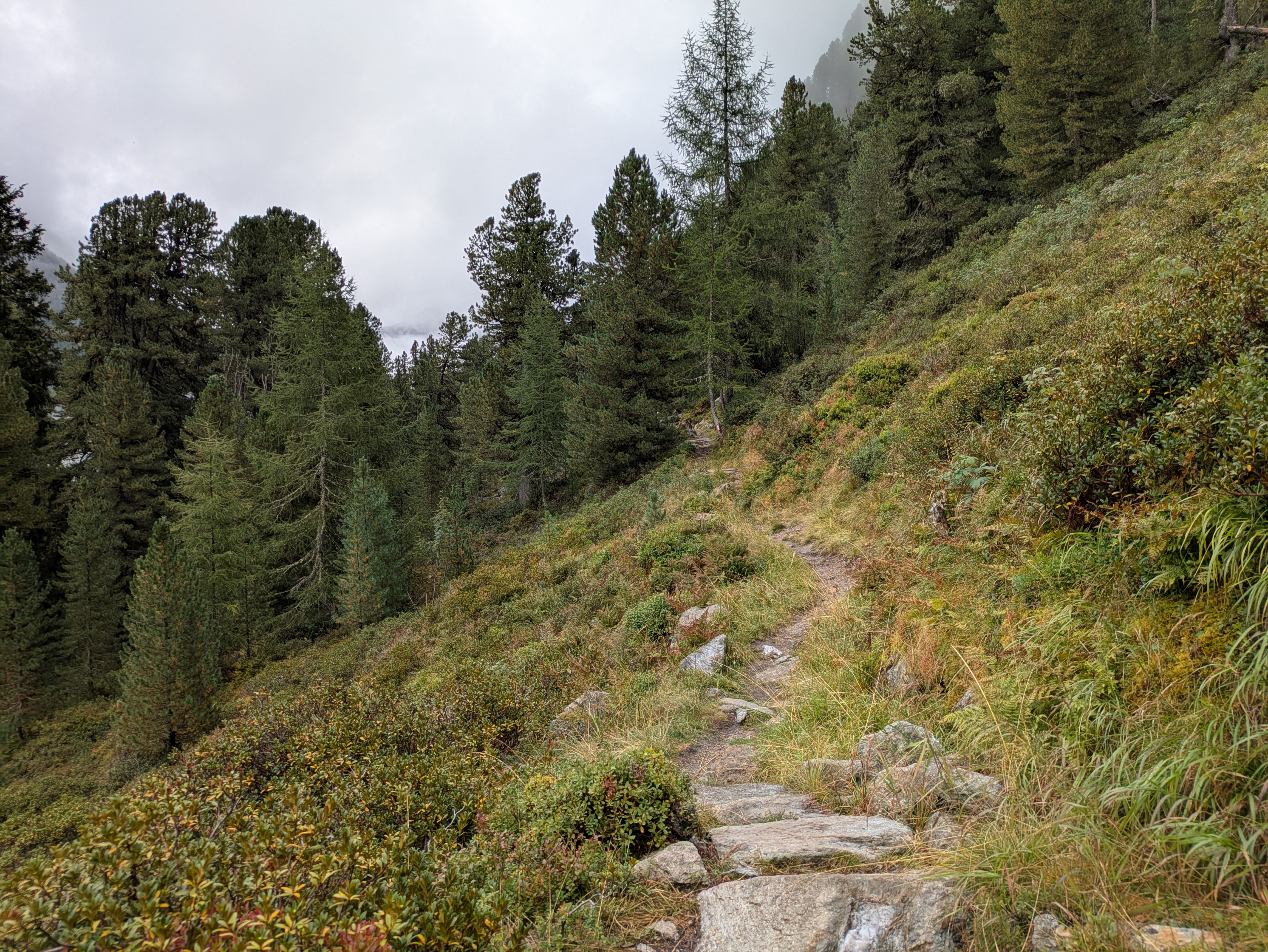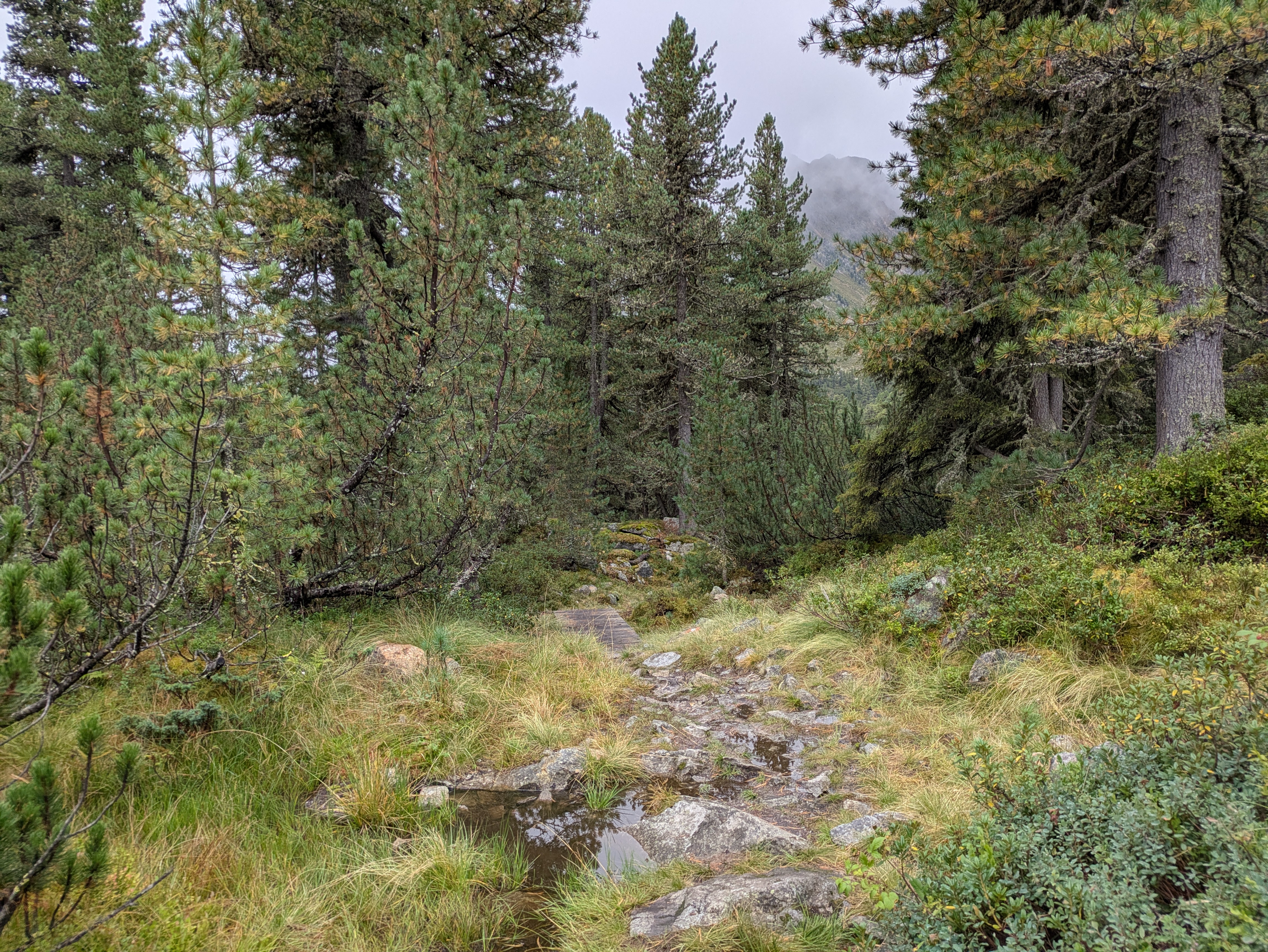 Statt eines Apfelstrudels gibt es dafür 60 Abstiegsmeter, um wieder die 1900’er Linie zu erreichen.