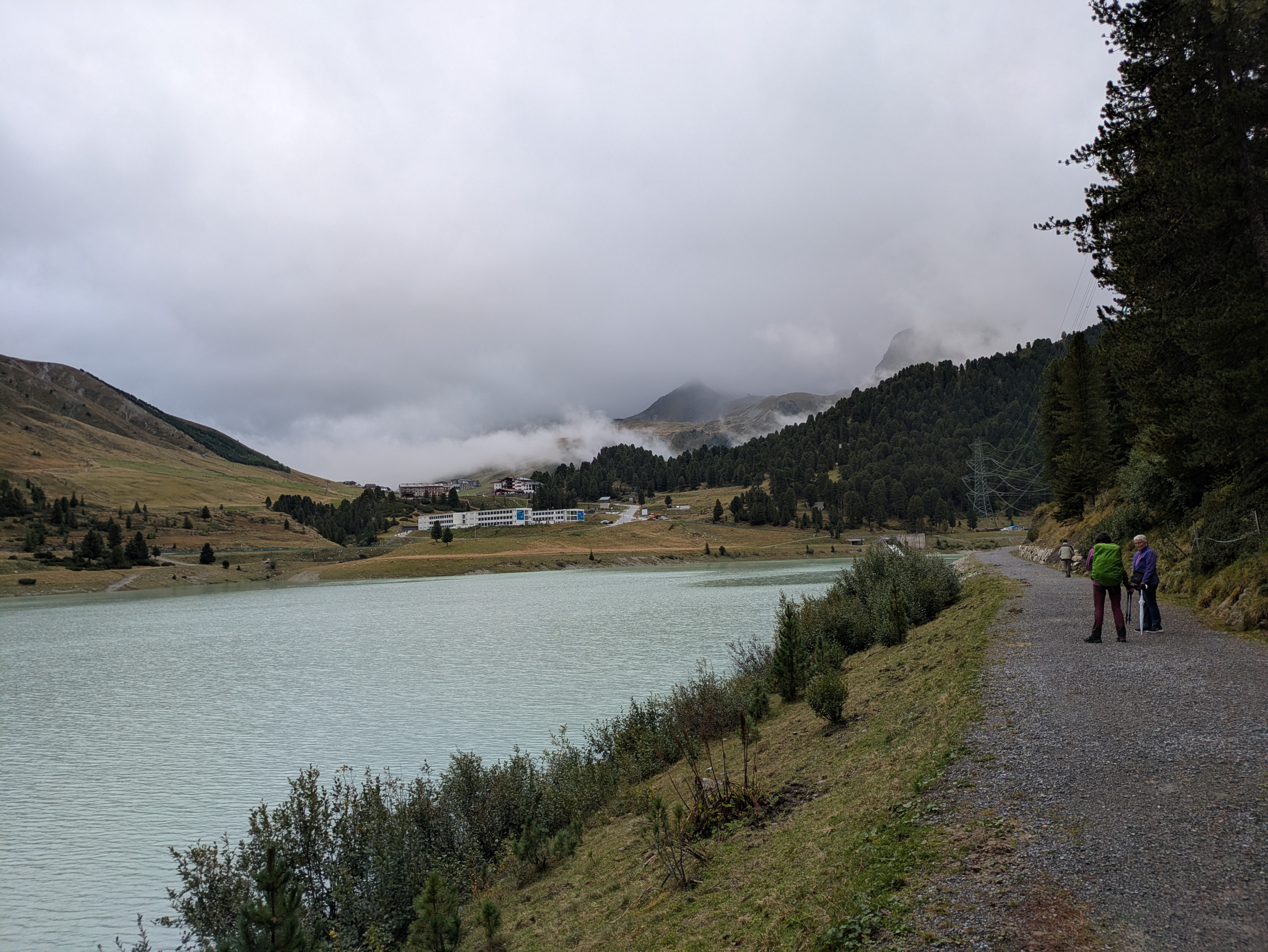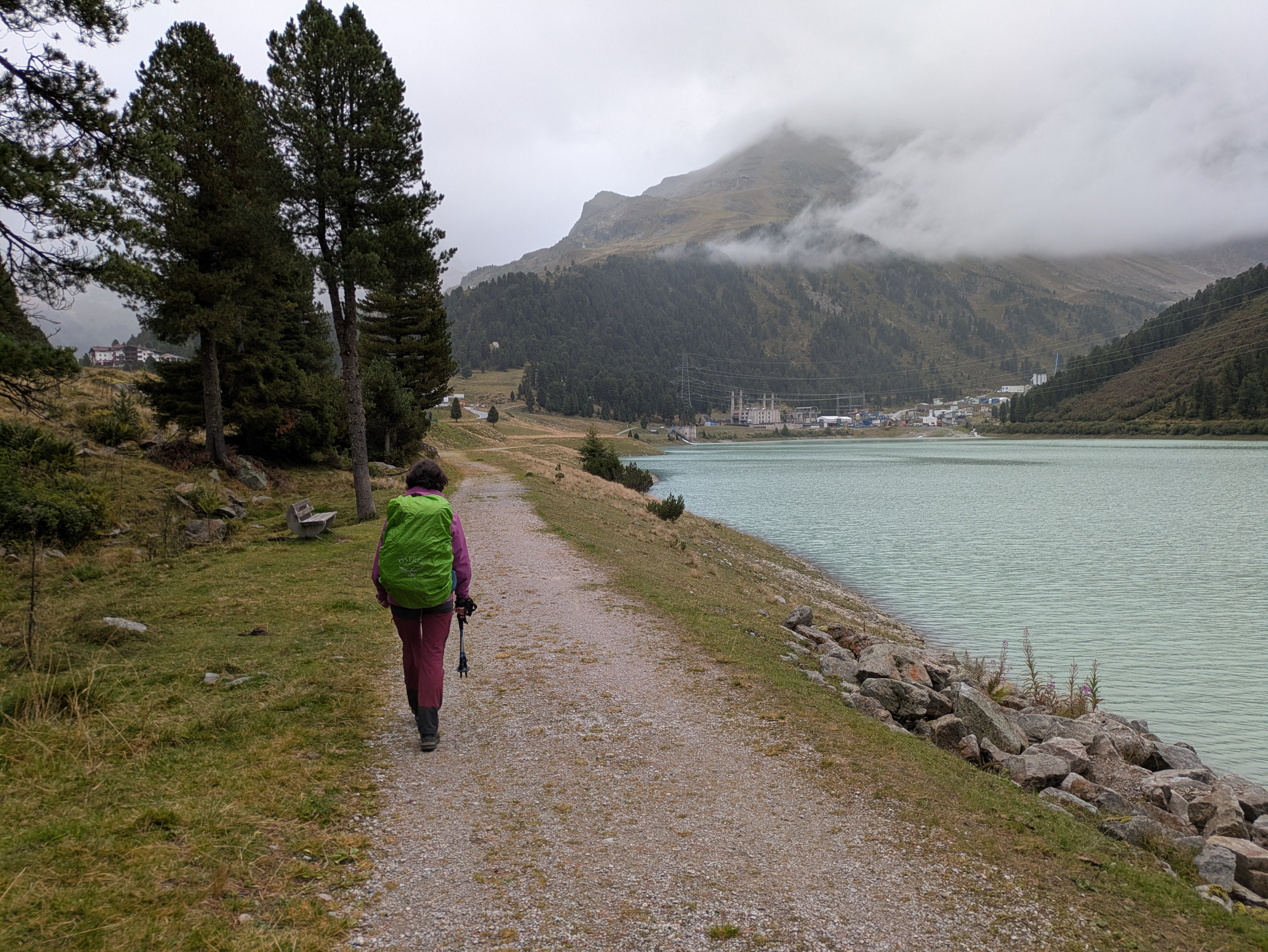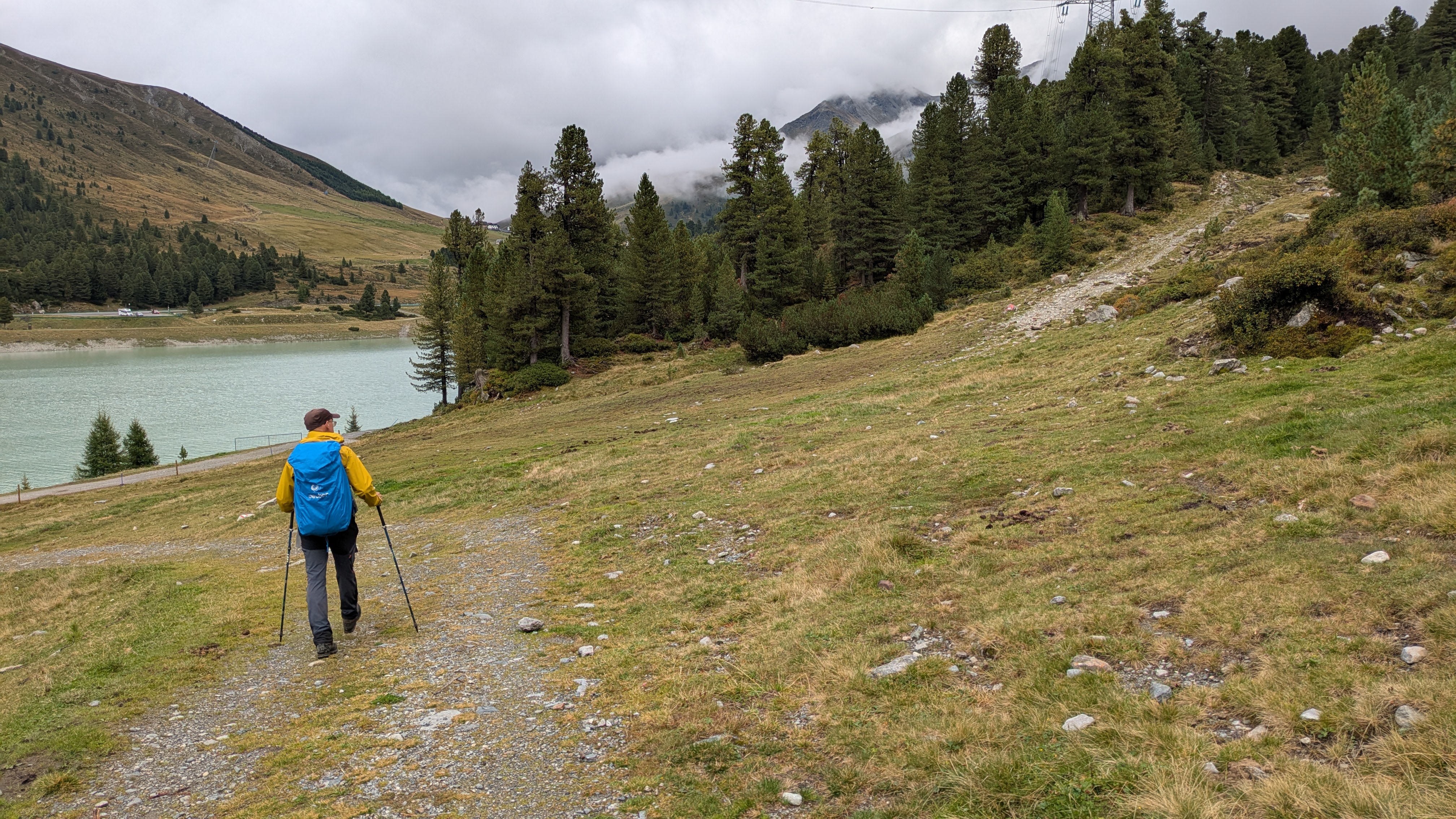Am Anfang der Staumauer sprechen wir einen Arbeiter an, von dem wir annehmen, dass er sich auskennt. Uns interessiert, ob man den Speicher Längental, aufgrund der Bauarbeiten, auch auf der Südseite passieren kann. Da er dies bejaht, entscheiden wir und für diese Variante. Den Weg auf der Nordseite kennen wir ja bereits.