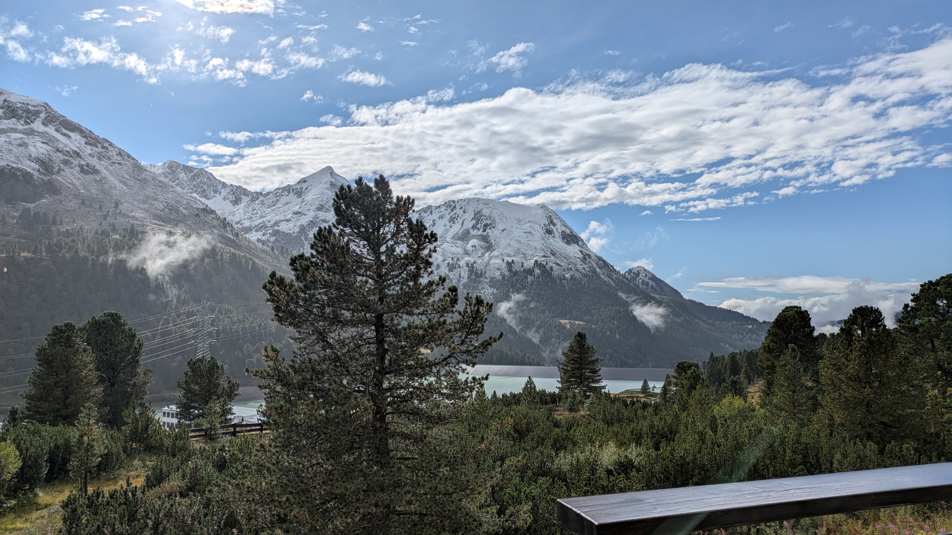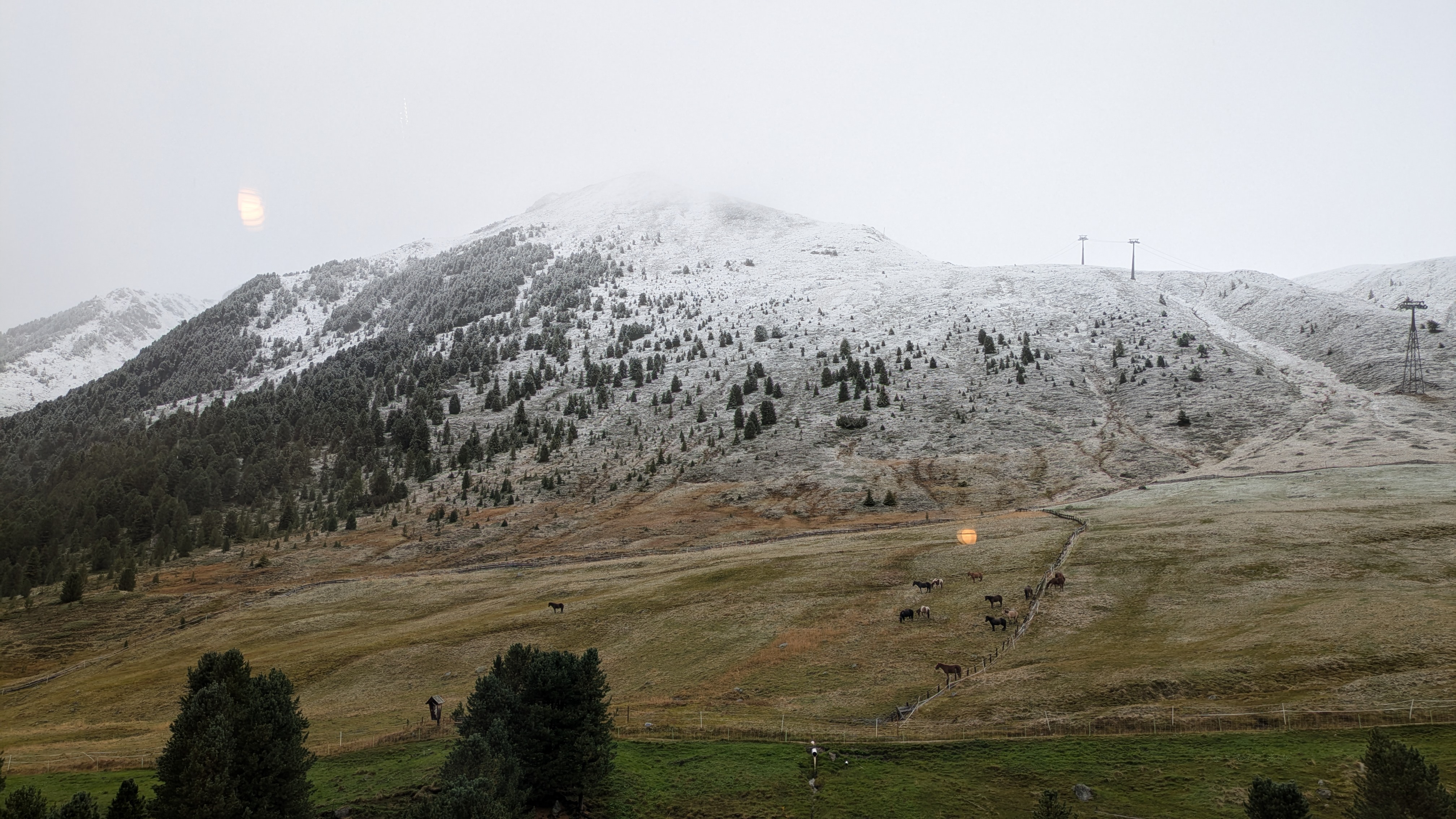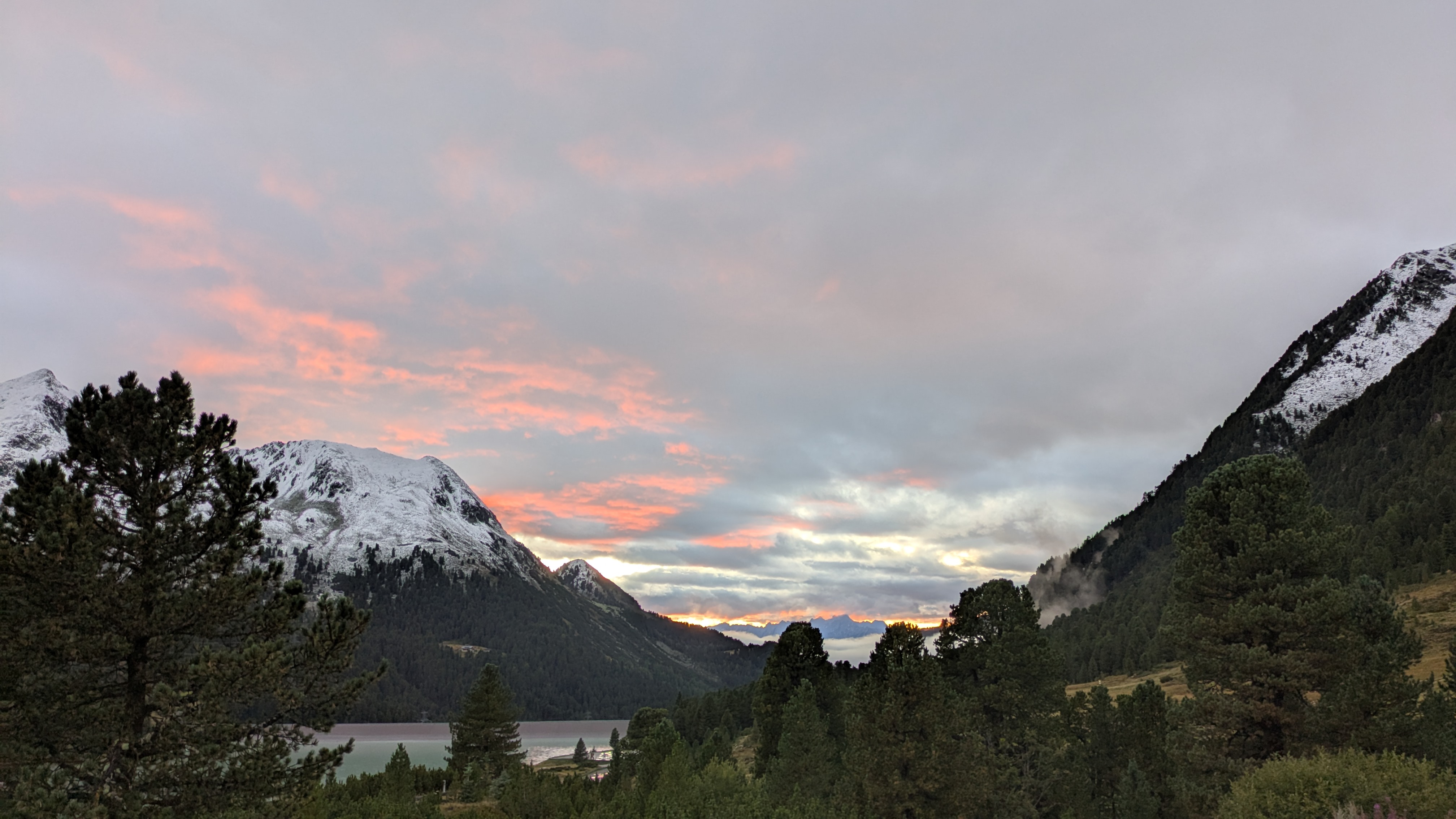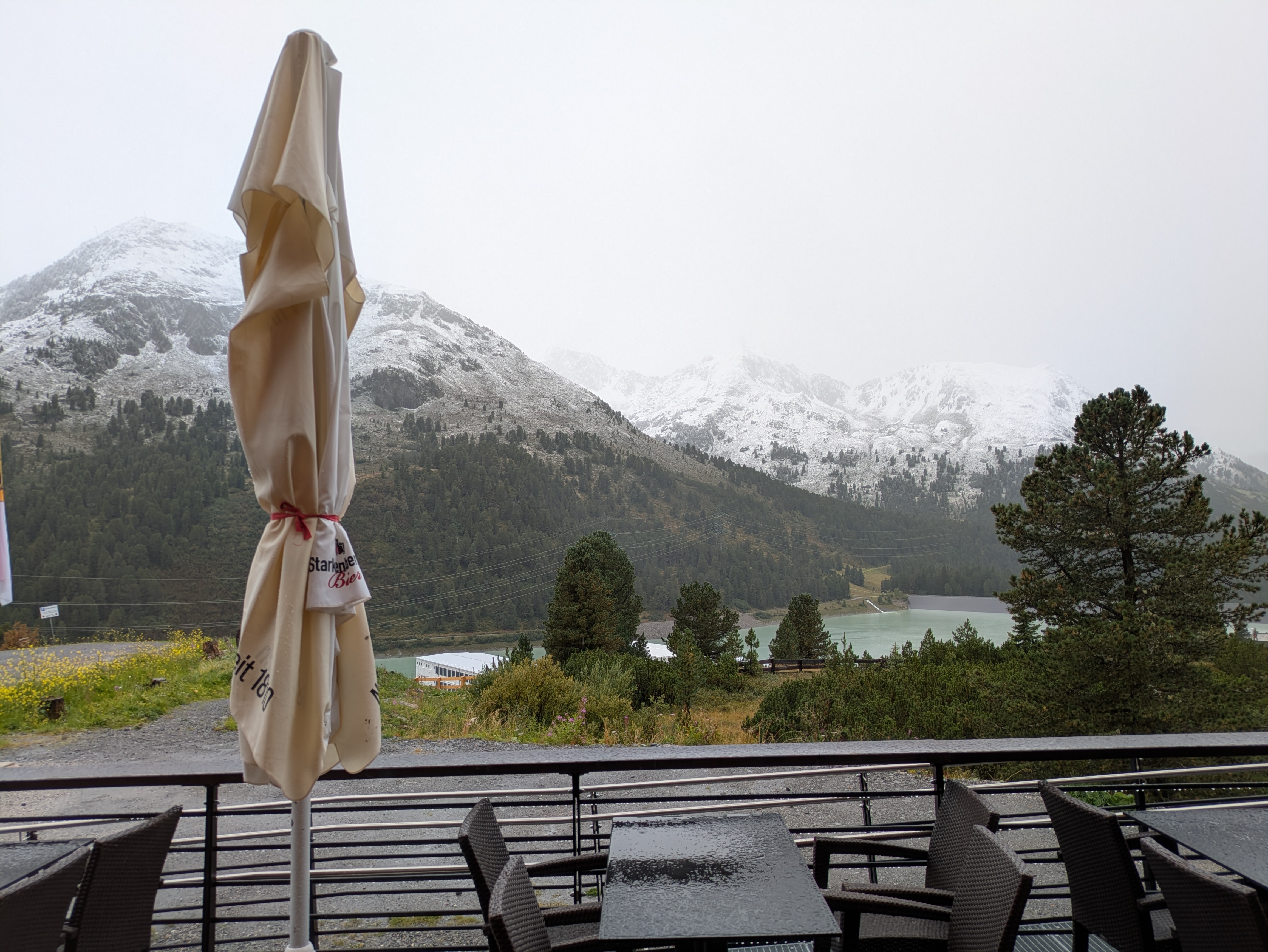Alles in allem haben wir an diesem Tag dennoch Glück gehabt. Es hätte schlimmer kommen können. Am Nachmittag zieht ein dickes Regengebiet durch und es schneit bis auf 2100m hinab.