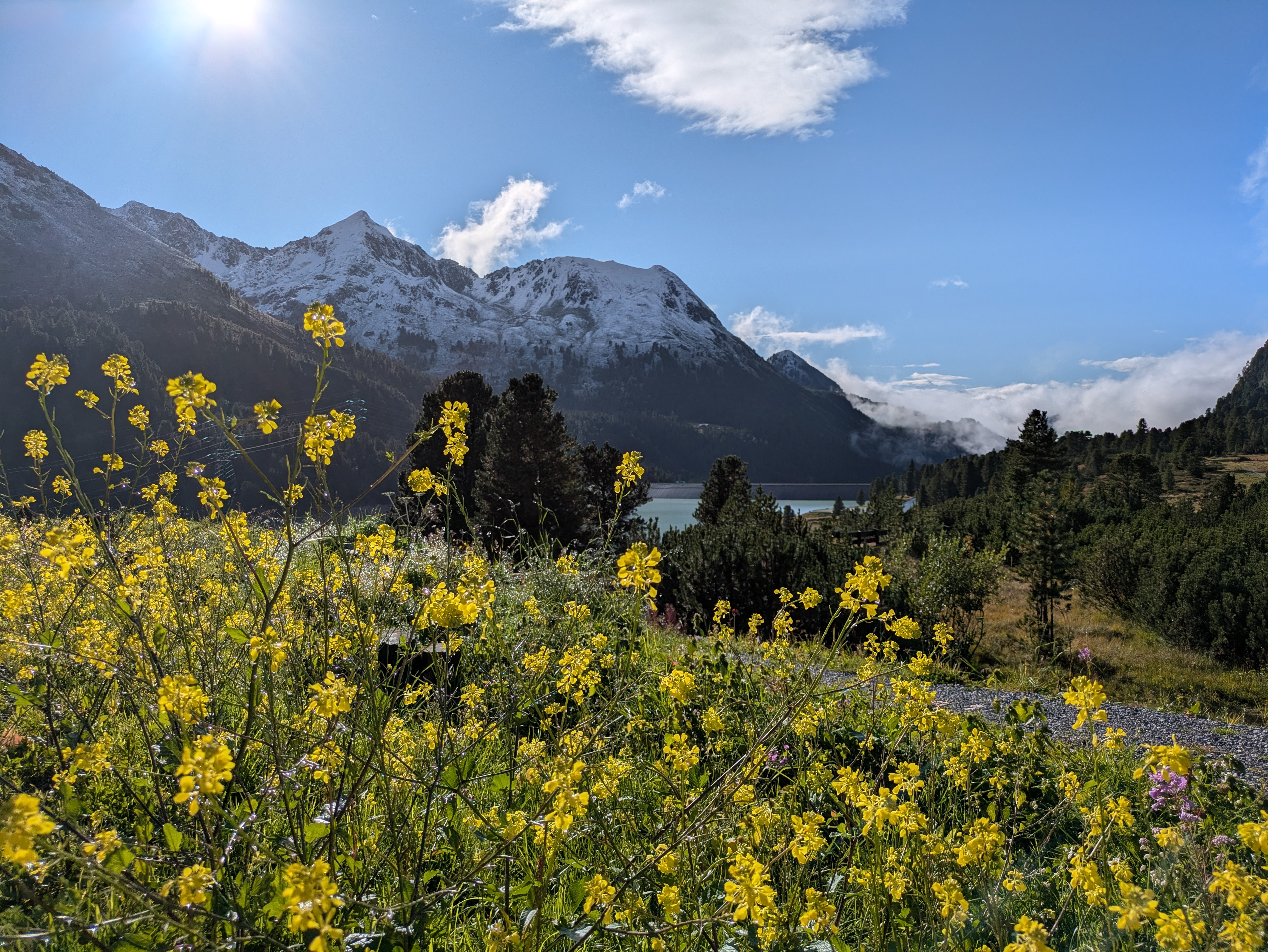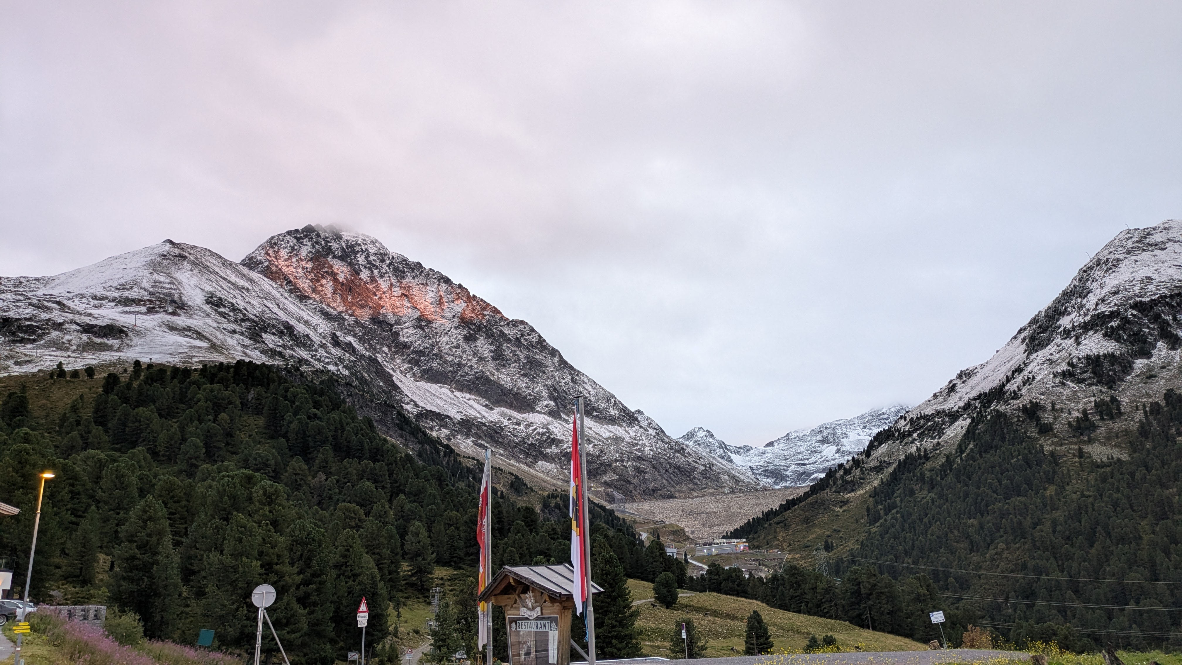 Am nächsten Morgen verabschieden wir uns bei bestem Sonnenschein aus dem Sellrain. Die Gipfel sind weiß und die Wege für die Wanderer hoffentlich begehbar.